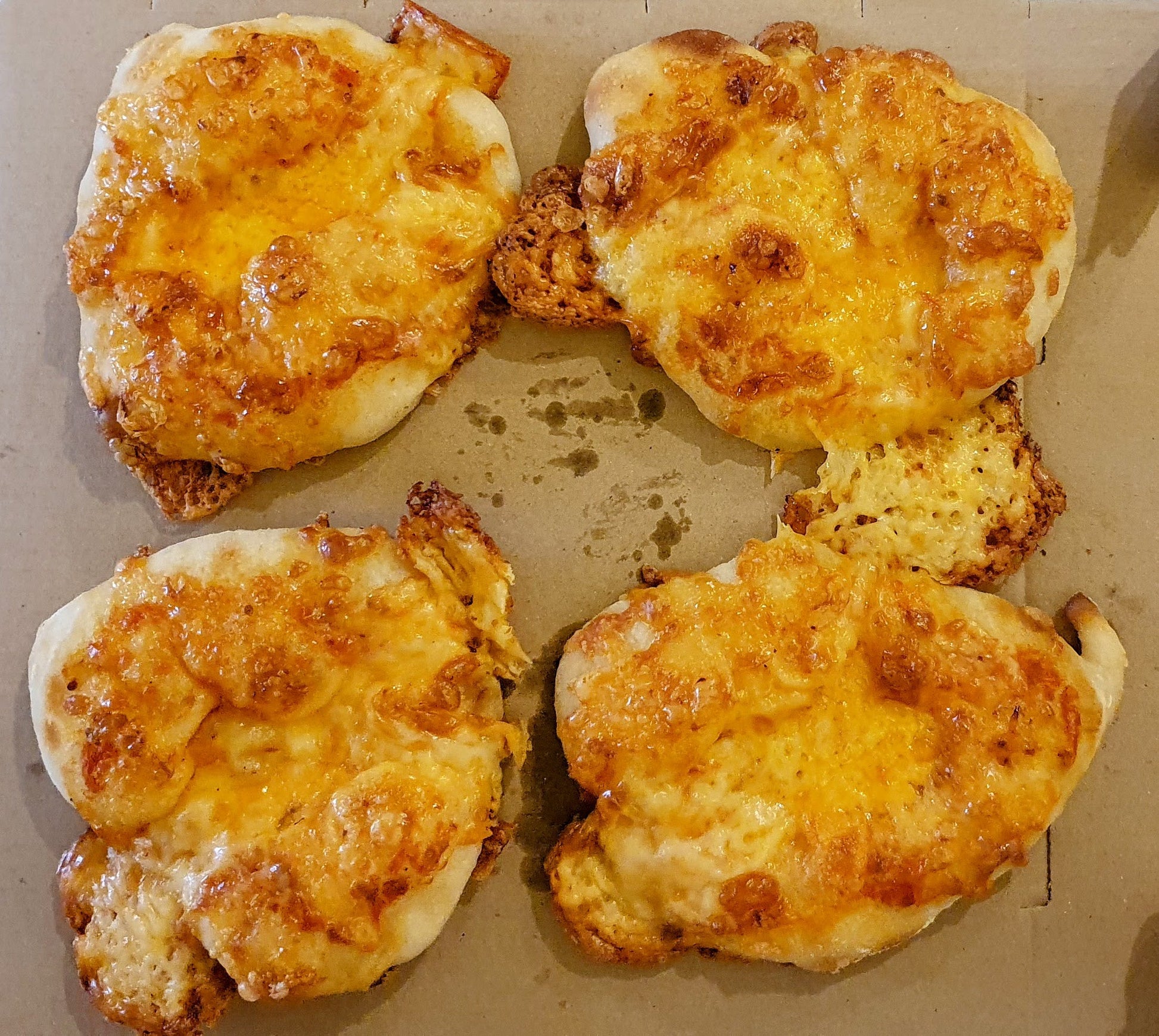 The 4 Mini Pizzas are made with TGB Sourdough in a stone oven imported from Belgium. The dough is like a pillow for the delicious pizza sauce from TheSaucySub and topped with the best of 3 different Tillamook Cheddar Cheeses that melt to perfection.