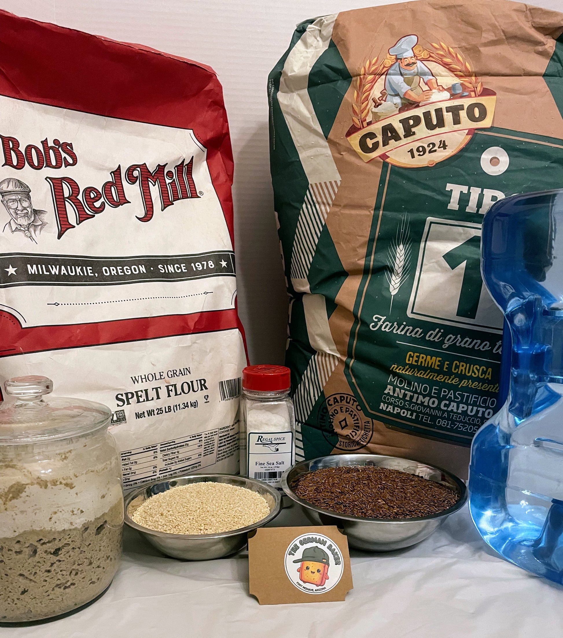 Ingredients: Whole Wheat Flour, Water, Sourdough, Spelt Flour, Flax Seeds, Salt